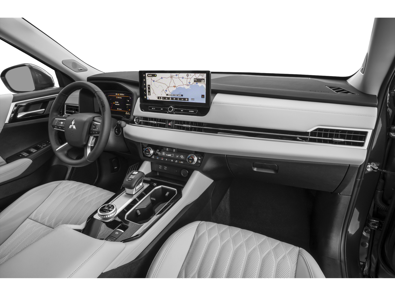 - Radio: AM/FM 12.3" Navigation w/Smartphone-Link -inc: wireless Apple CarPlay and Google Android Auto, Mitsubishi Connect w/5-year safeguard trial and 1-year remote services trial (mobile app enrollment required), HD radio, Bluetooth® wireless technology, steering wheel controls for phone, audio and voice recognition, 2 USB-C ports, SXM all access and SXM traffic & travel link w/90-day subscription and dynamic sound Yamaha premium system w/8 speakers